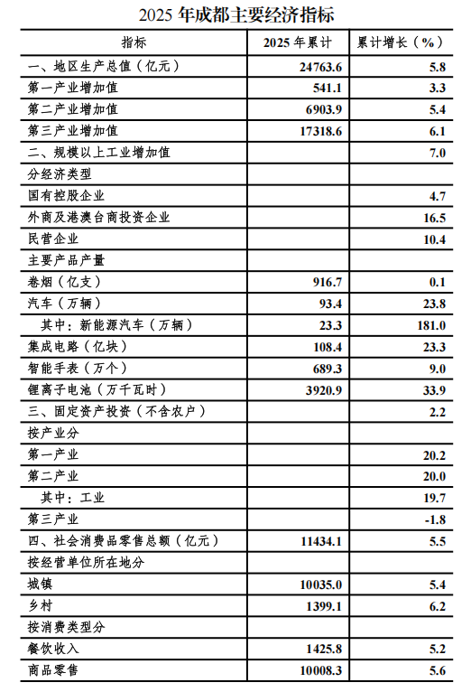 在追求高质地发展的同期,成齐长期筑牢民生底线。2025年,全市食粮总产量达237.1万吨,增长1.1%;园林生果、茶叶、蔬菜产量离别增长6.1%、5.4%、3.6%;生猪出栏406.6万头,保险“肉盘子”踏实供应。这时候,住户滥用价钱仅上升0.1%,其中食物烟酒价钱致使下落0.6%,灵验缓解了市民生计成本压力。这种“大城稳粮、小民省心”的款式,为城市嘱托概略情趣提供了坚实缓冲。